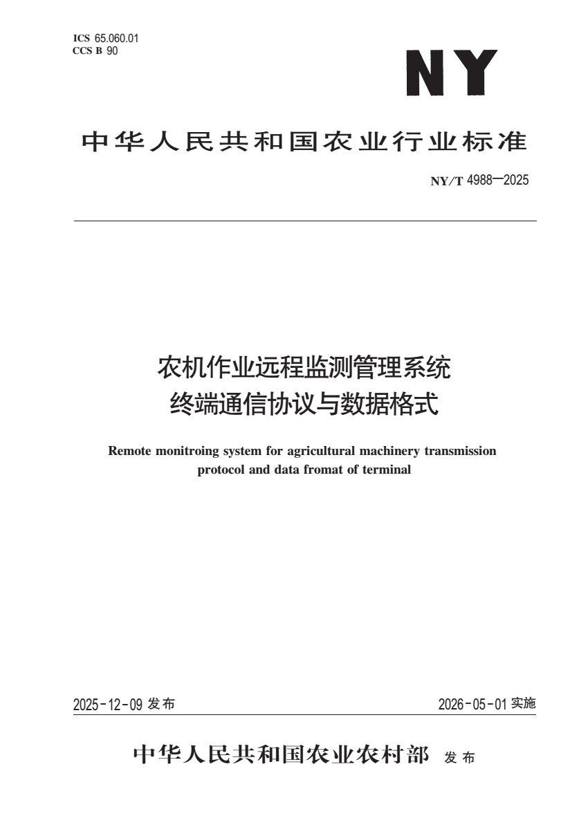 NY_T 4988-2025 农机作业远程监测管理系统 终端通信协议与数.pdf