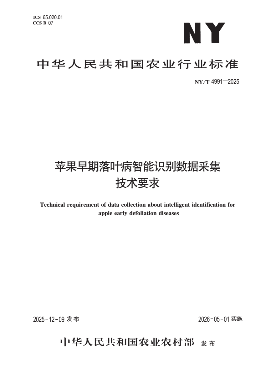 NY_T 4991-2025 苹果早期落叶病智能识别数据采集技术要求.pdf