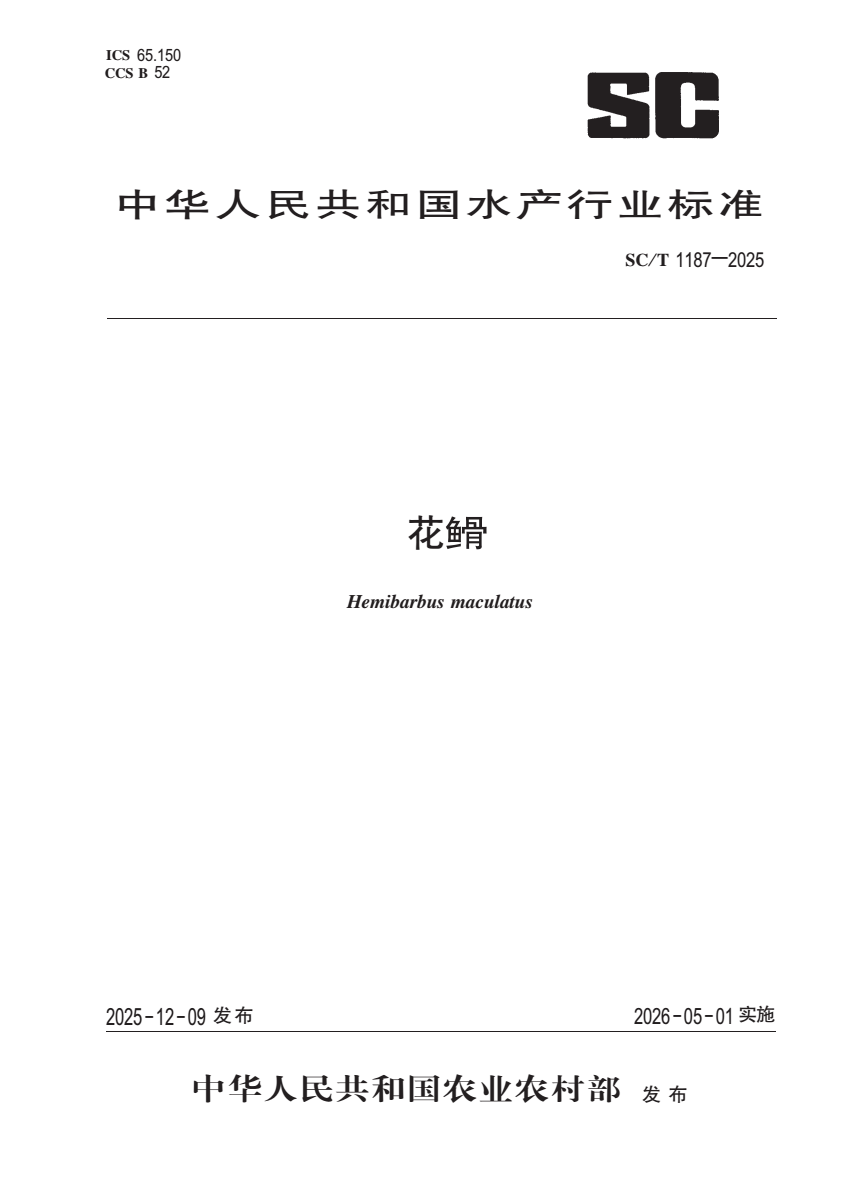 标准编号:SC/T 1187-2025