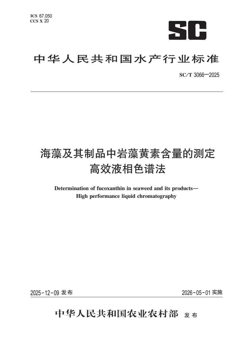 SC/T 3066-2025 海藻及其制品中岩藻黄素含量的测定 高效液相色谱法