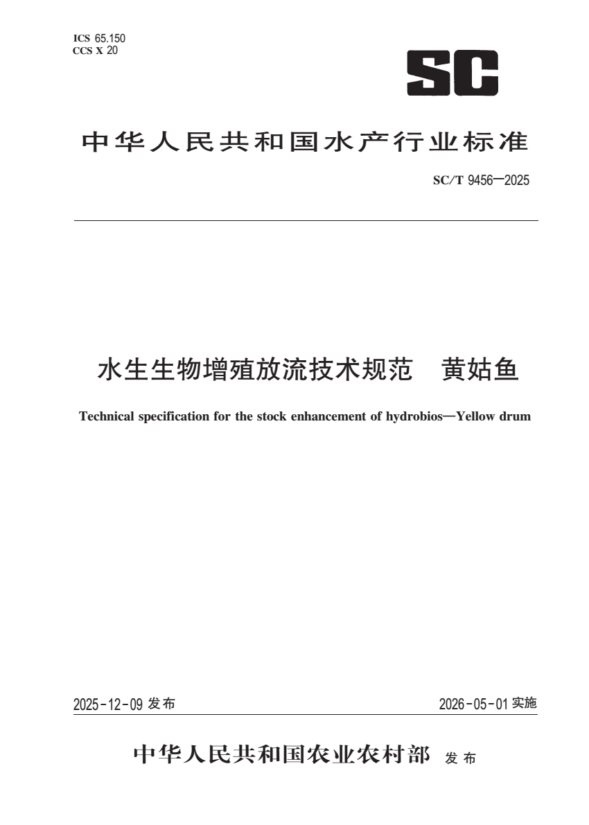 SC_T 9456-2025 水生生物增殖放流技术规范 黄姑鱼.pdf (1.02 MB)