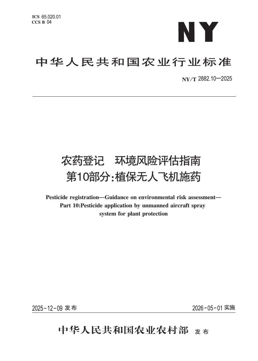 中文名称:农药登记 环境风险评估指南 第10部分:植保无人飞机施药