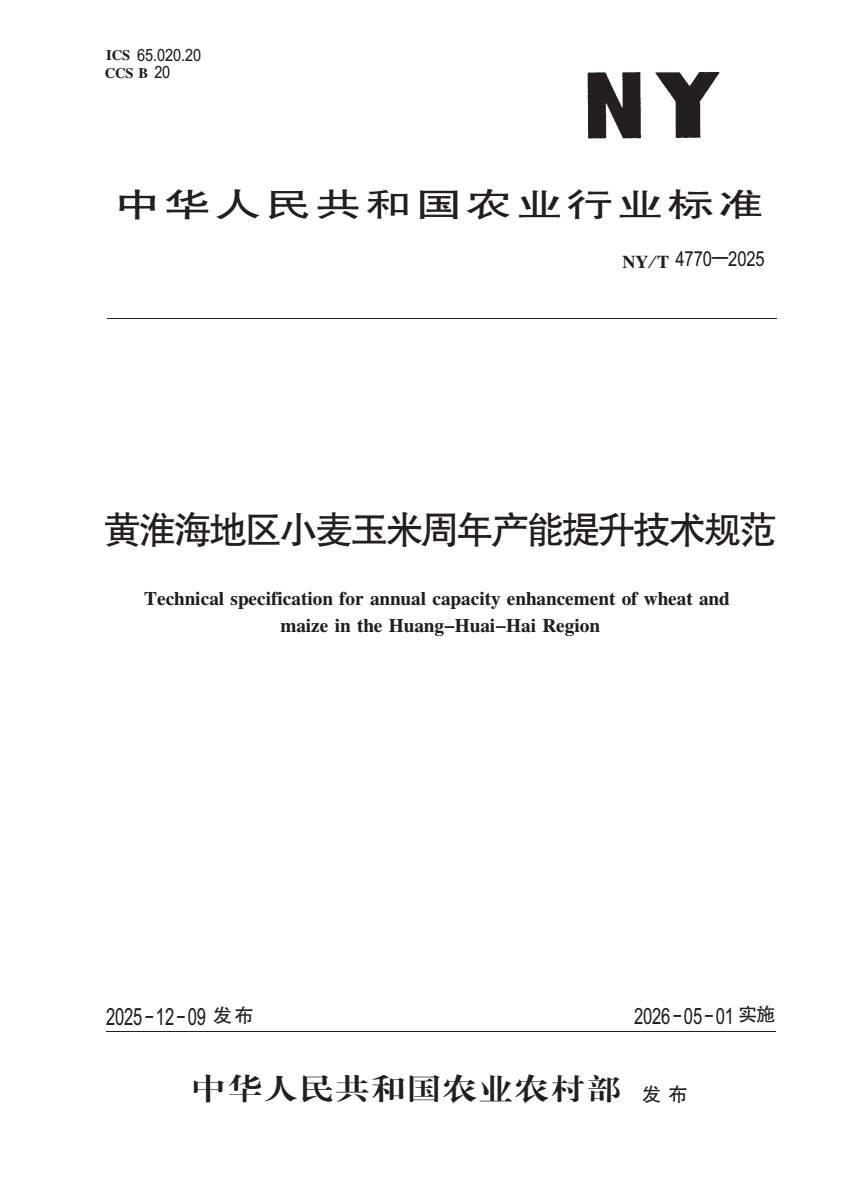 NY_T 4770-2025 黄淮海地区小麦玉米周年产能提升技术规范.pdf