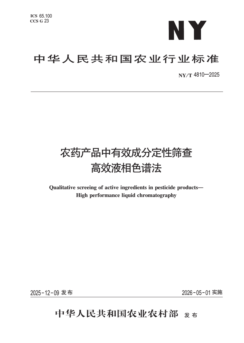 NY_T 4810-2025 农药产品中有效成分定性筛查 高效液相色谱法.pdf