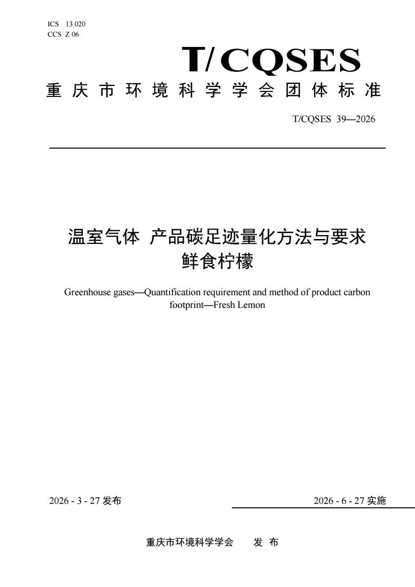 T_CQSES 39-2026 温室气体 产品碳足迹量化方法与要求 鲜食.pdf