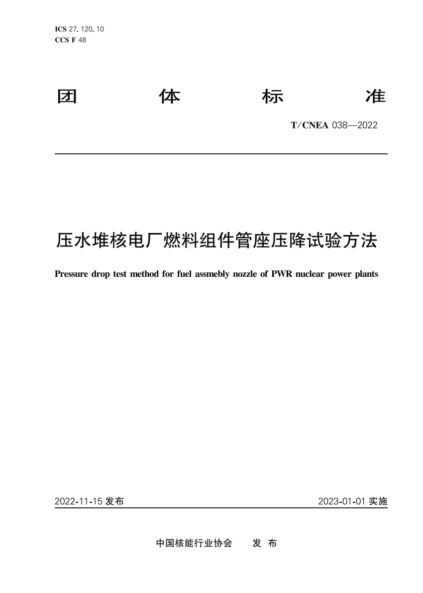 T_CNEA 038-2022 压水堆核电厂燃料组件管座压降试验方法.pdf