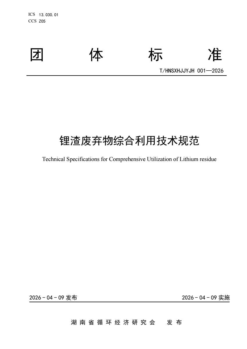 T_HNSXHJJYJH 001-2026 锂渣废弃物综合利用技术规范.pdf