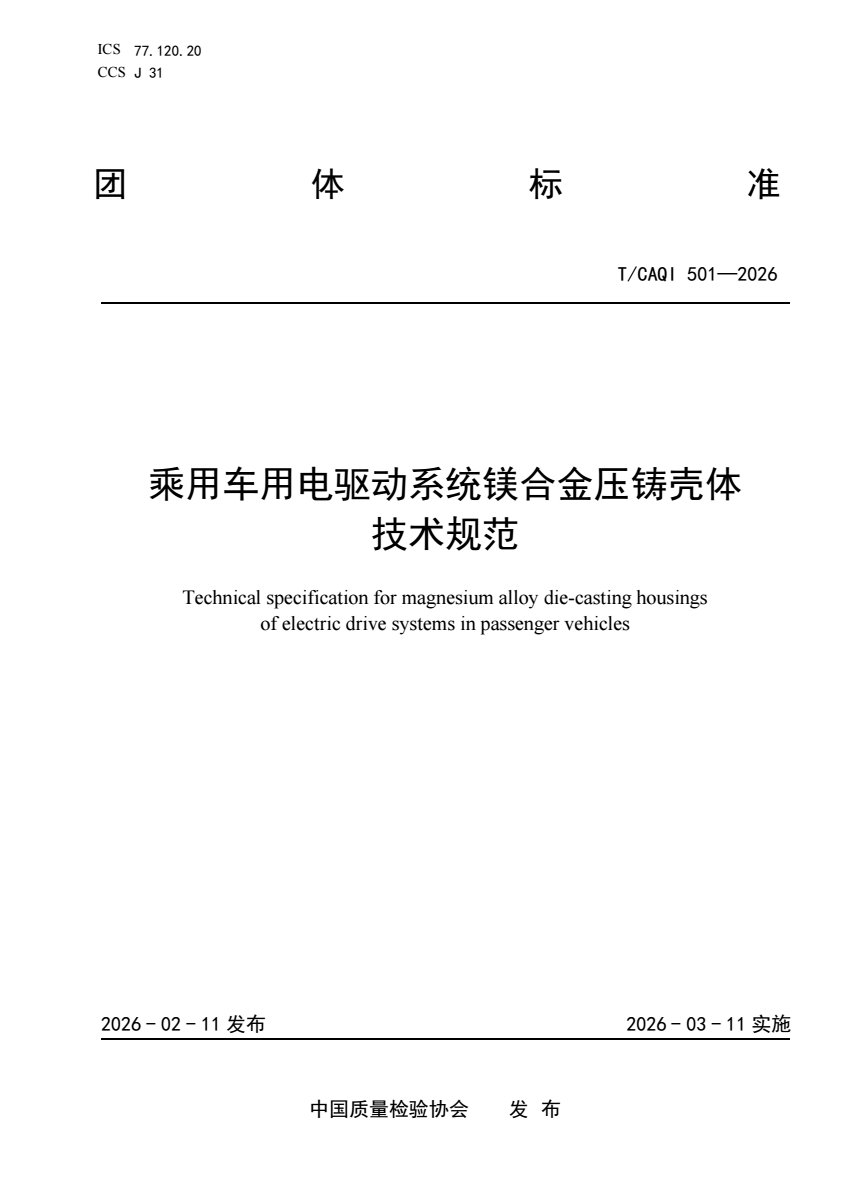 T_CAQI 501-2026 乘用车用电驱动系统镁合金压铸壳体技术规范.pdf