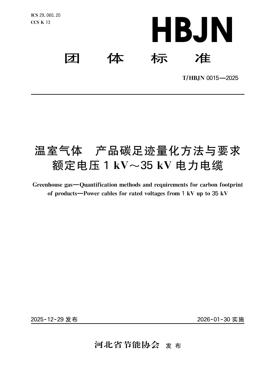 中文名称:温室气体 产品碳足迹量化方法与要求 额定电压1kV~35kV电力电缆
