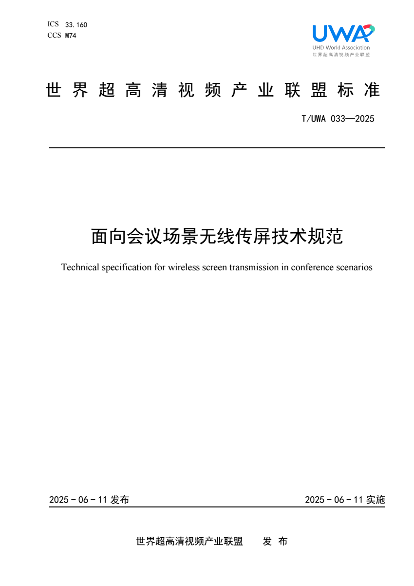 T_UWA 033-2025 面向会议场景无线传屏技术规范.pdf