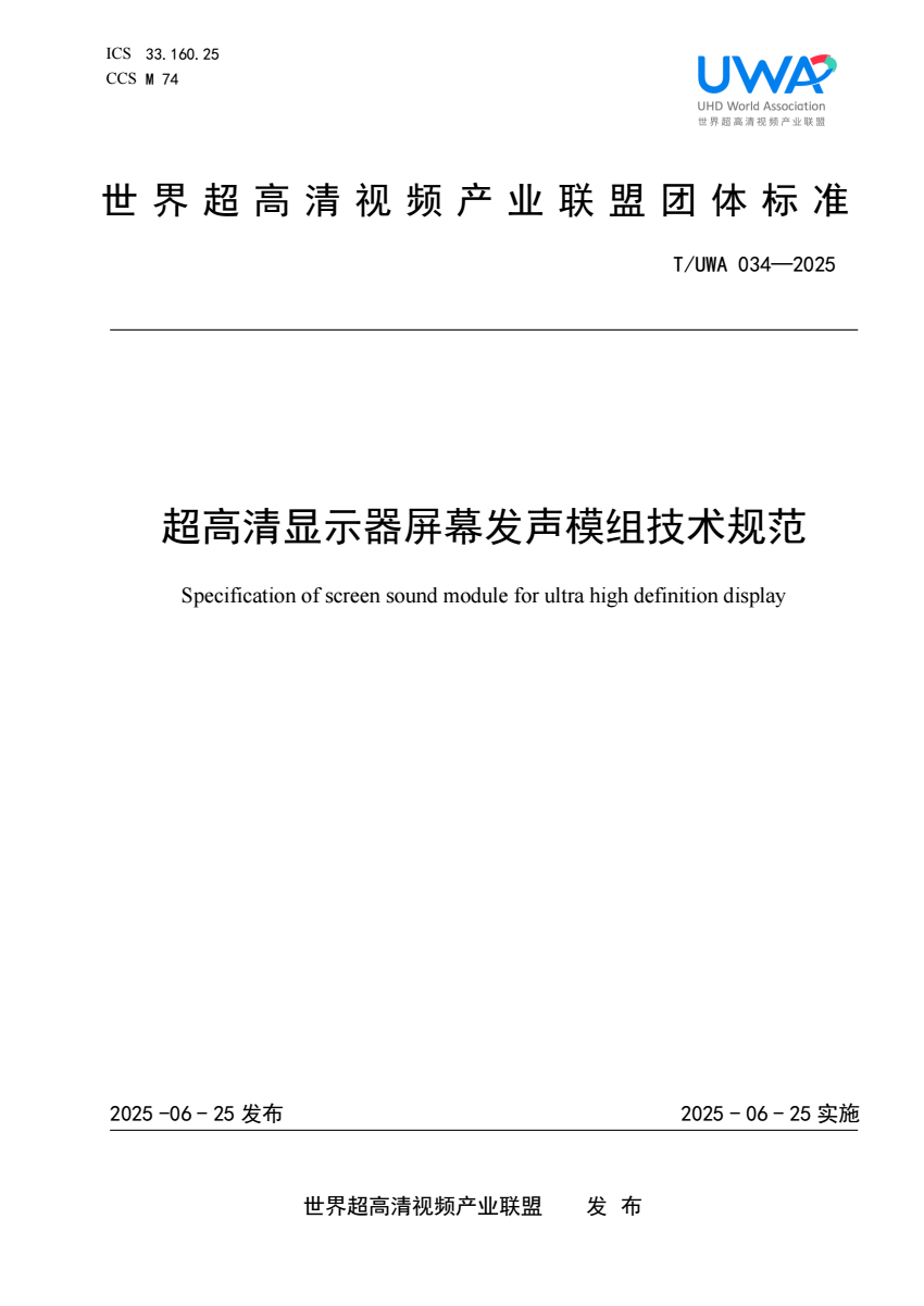 T_UWA 034-2025 超高清显示器屏幕发声模组技术规范.pdf