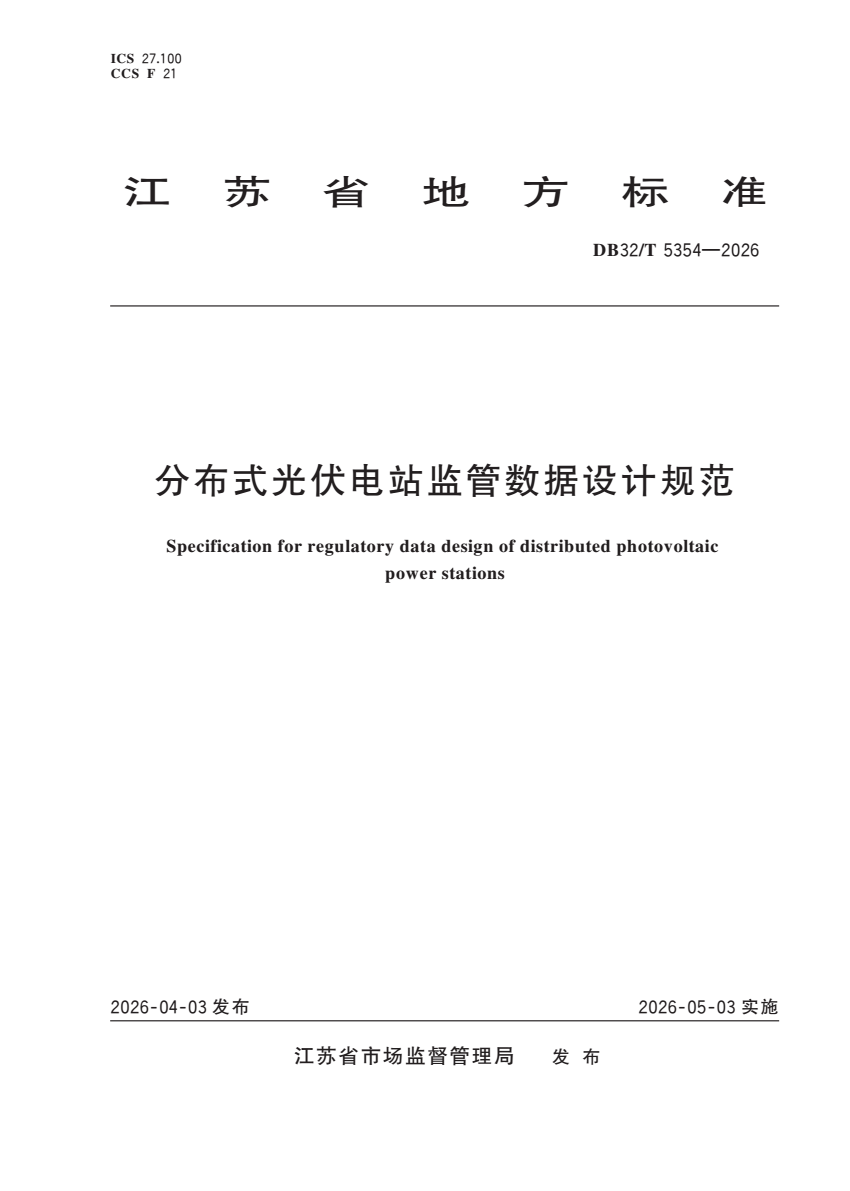 DB32_T 5354-2026 分布式光伏电站监管数据设计规范.pdf