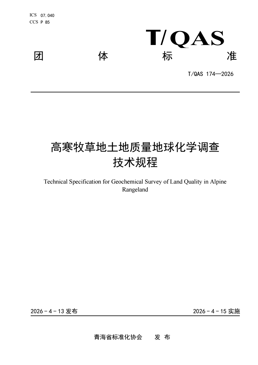 T_QAS 174-2026 高寒牧草地土地质量地球化学调查技术规程.pdf