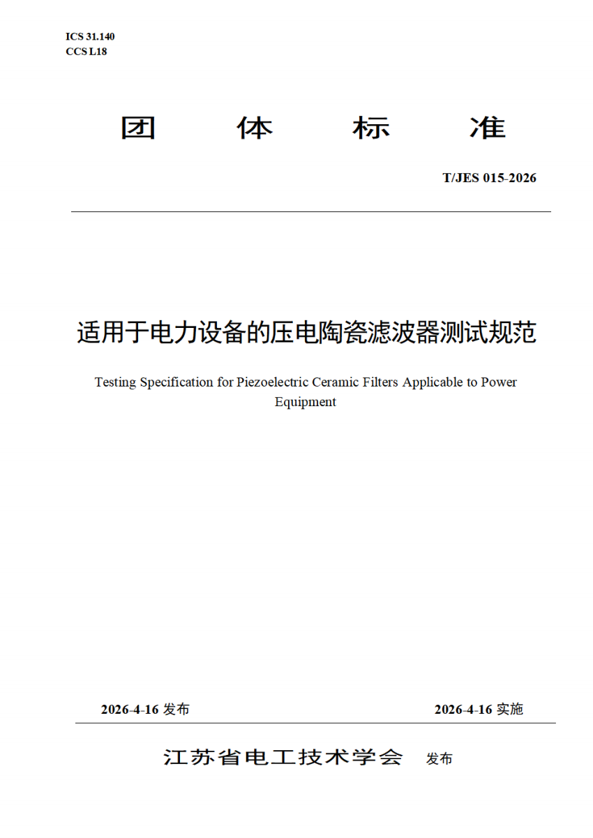 T_JES 015-2026 适用于电力设备的压电陶瓷滤波器测试规范.pdf (606.61 KB)
