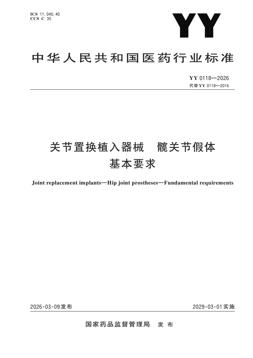 YY 0118-2026 关节置换植入器械 髋关节假体 基本要求.pdf