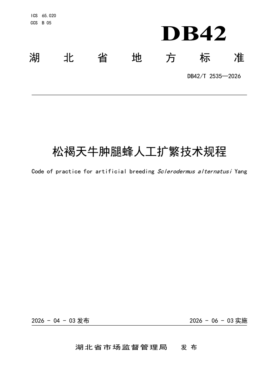 DB42_T 2535-2026 松褐天牛肿腿蜂人工扩繁技术规程.pdf (693.14 KB)