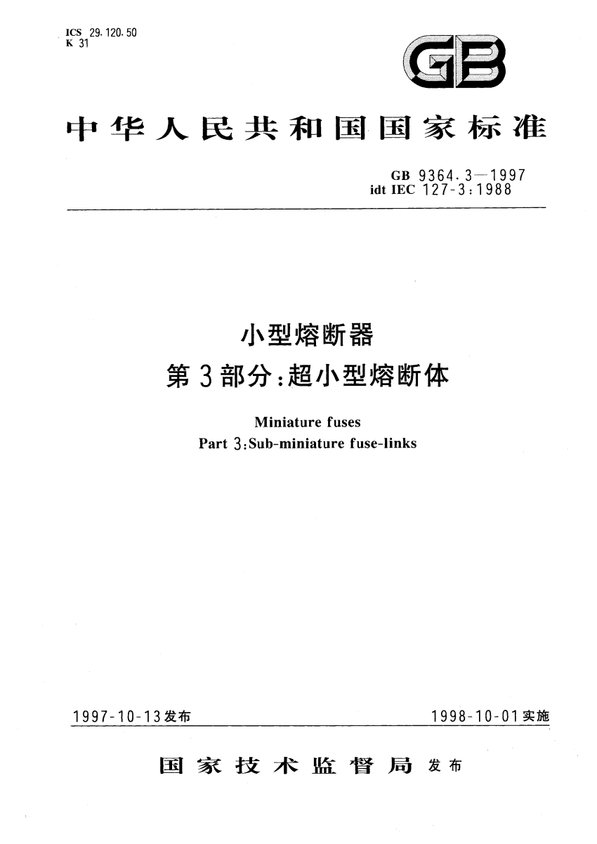 GB 9364.3-1997 小型熔断器 第3部分:超小型熔断体.pdf